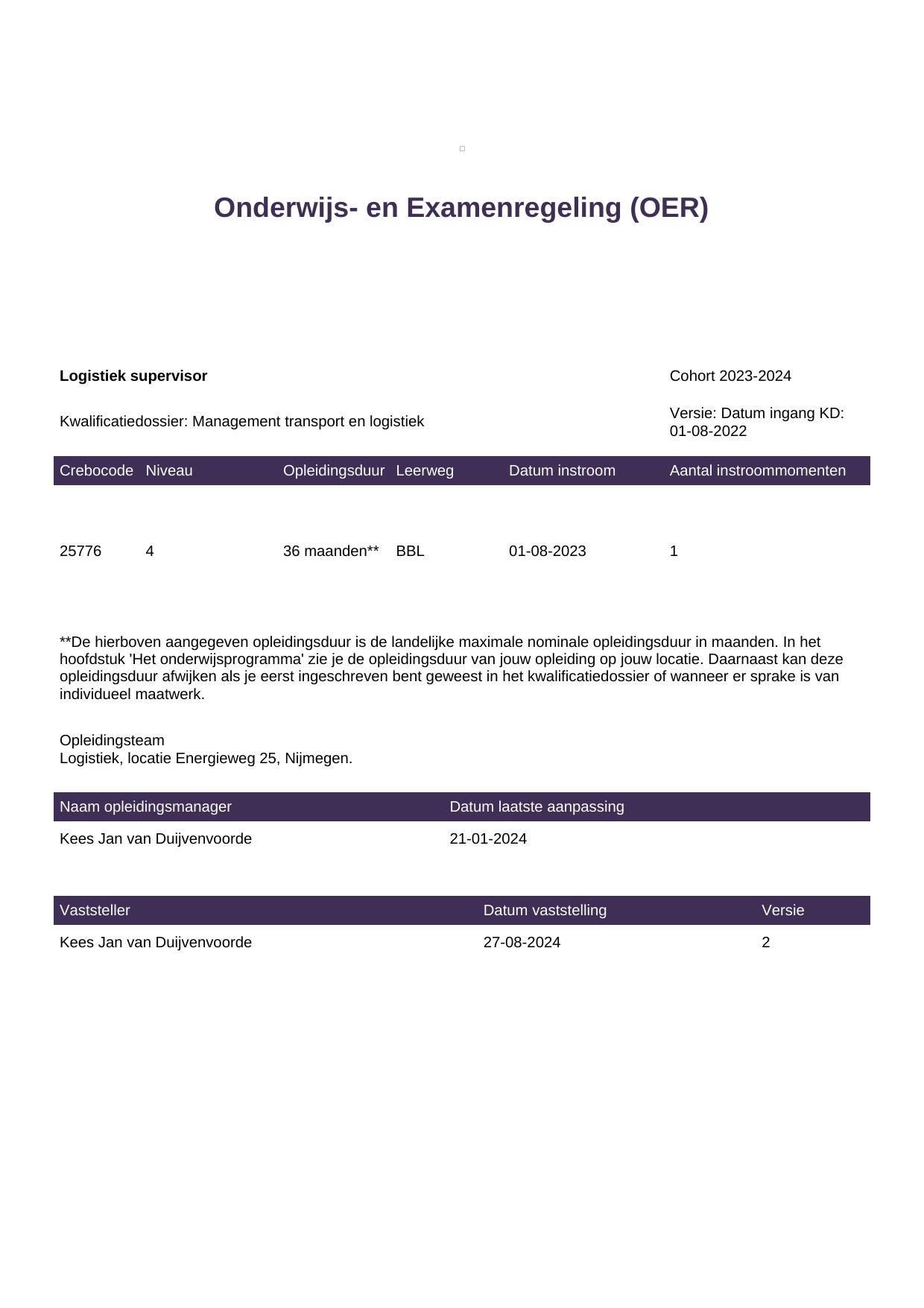 Logistiek supervisor 25776BBL-NYM in cohort 2023-2024