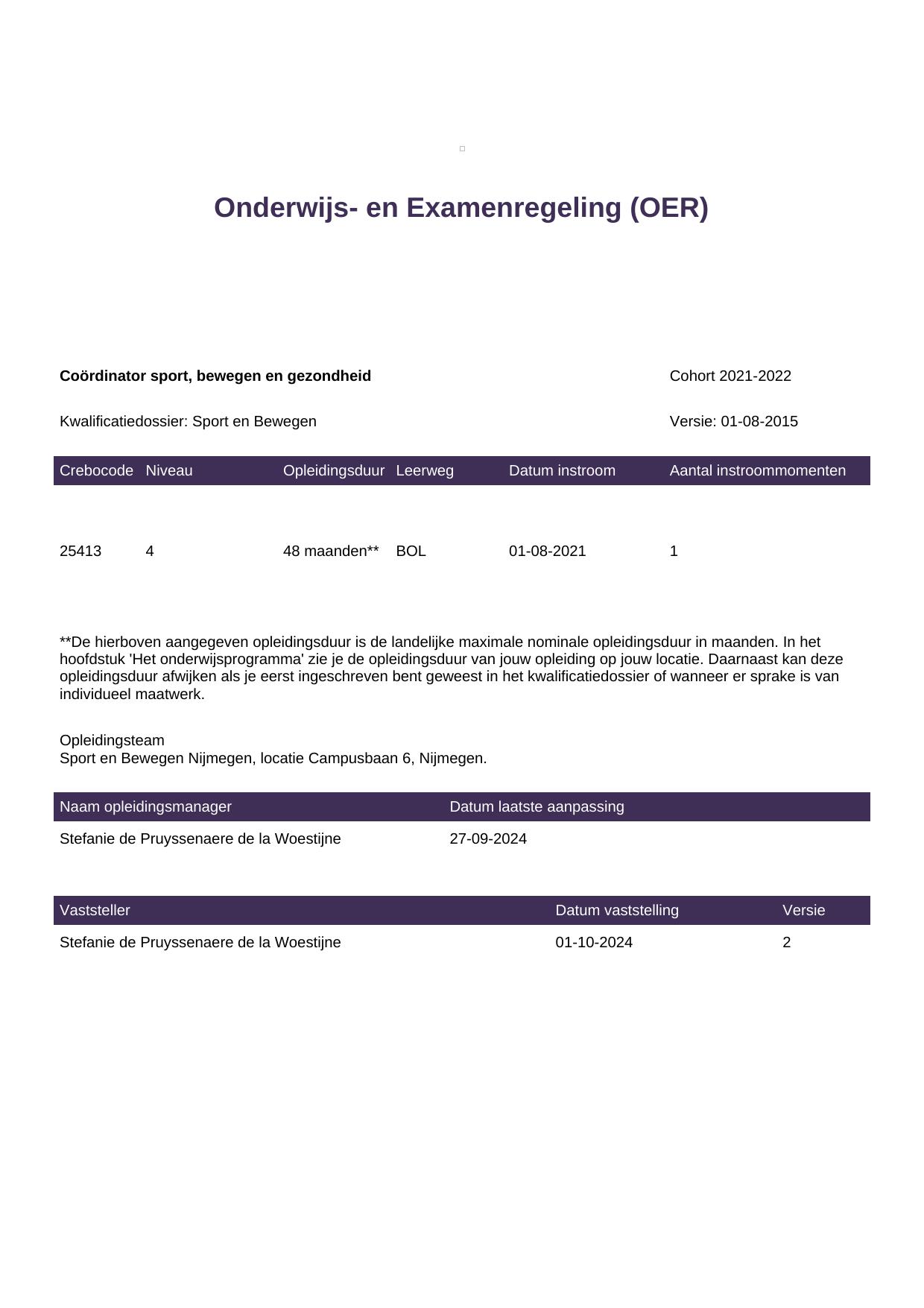 Coördinator sport, bewegen en gezondheid 25413BOL-NYM in cohort 2021-2022