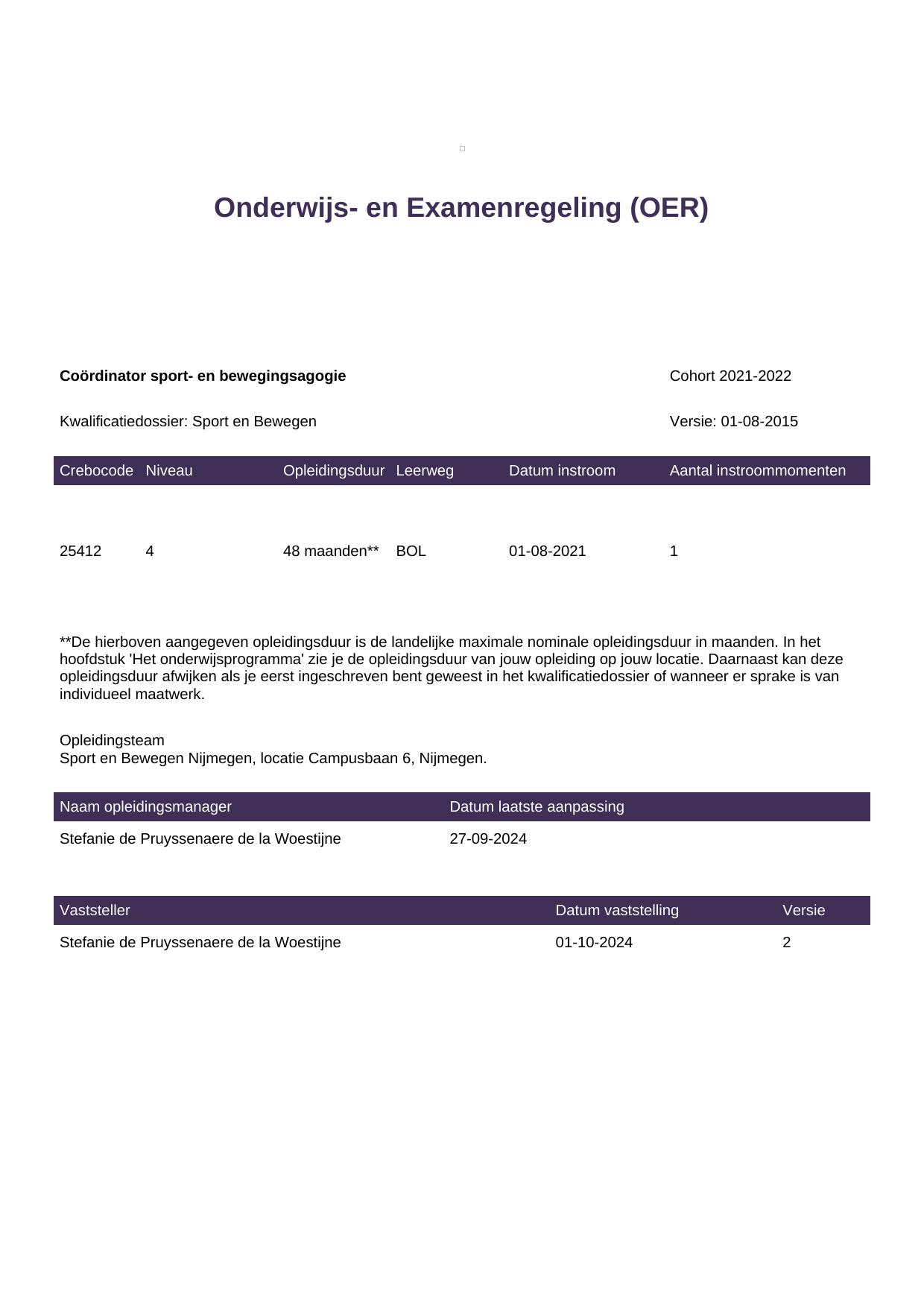Coördinator sport- en bewegingsagogie 25412BOL-NYM in cohort 2021-2022