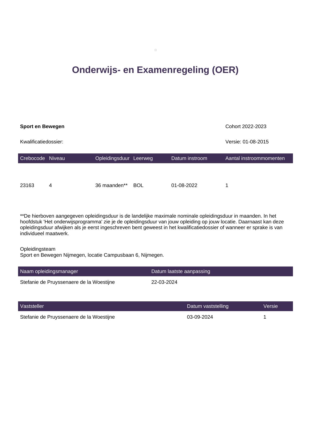 Sport en Bewegen 23163BOL-NYM in cohort 2022-2023