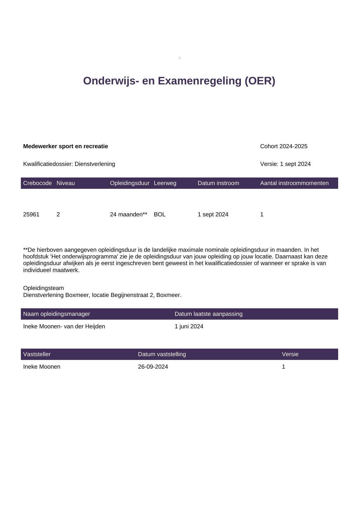 Medewerker sport en recreatie 25961BOL-BOX in cohort 2024-2025