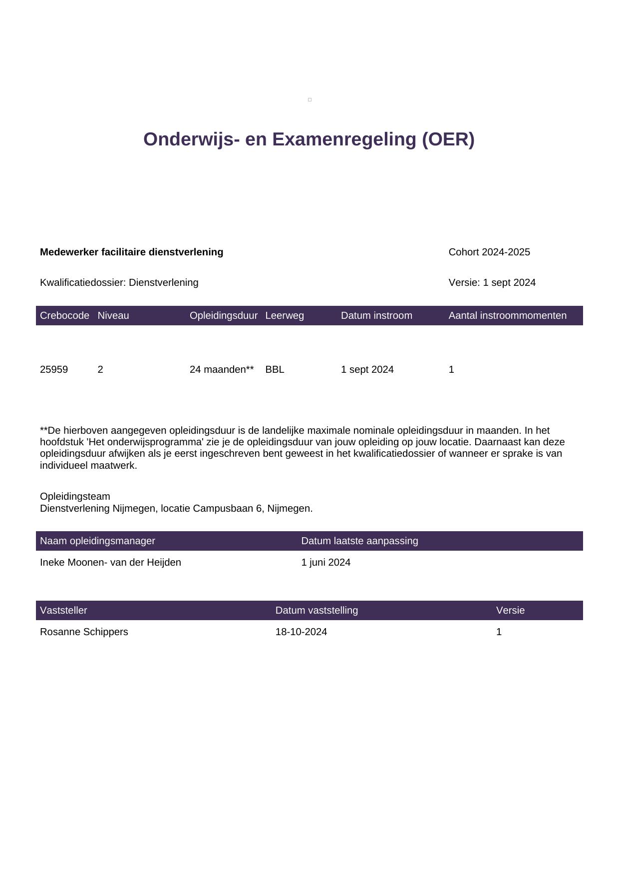 Medewerker facilitaire dienstverlening 25959BBL-NYM in cohort 2024-2025