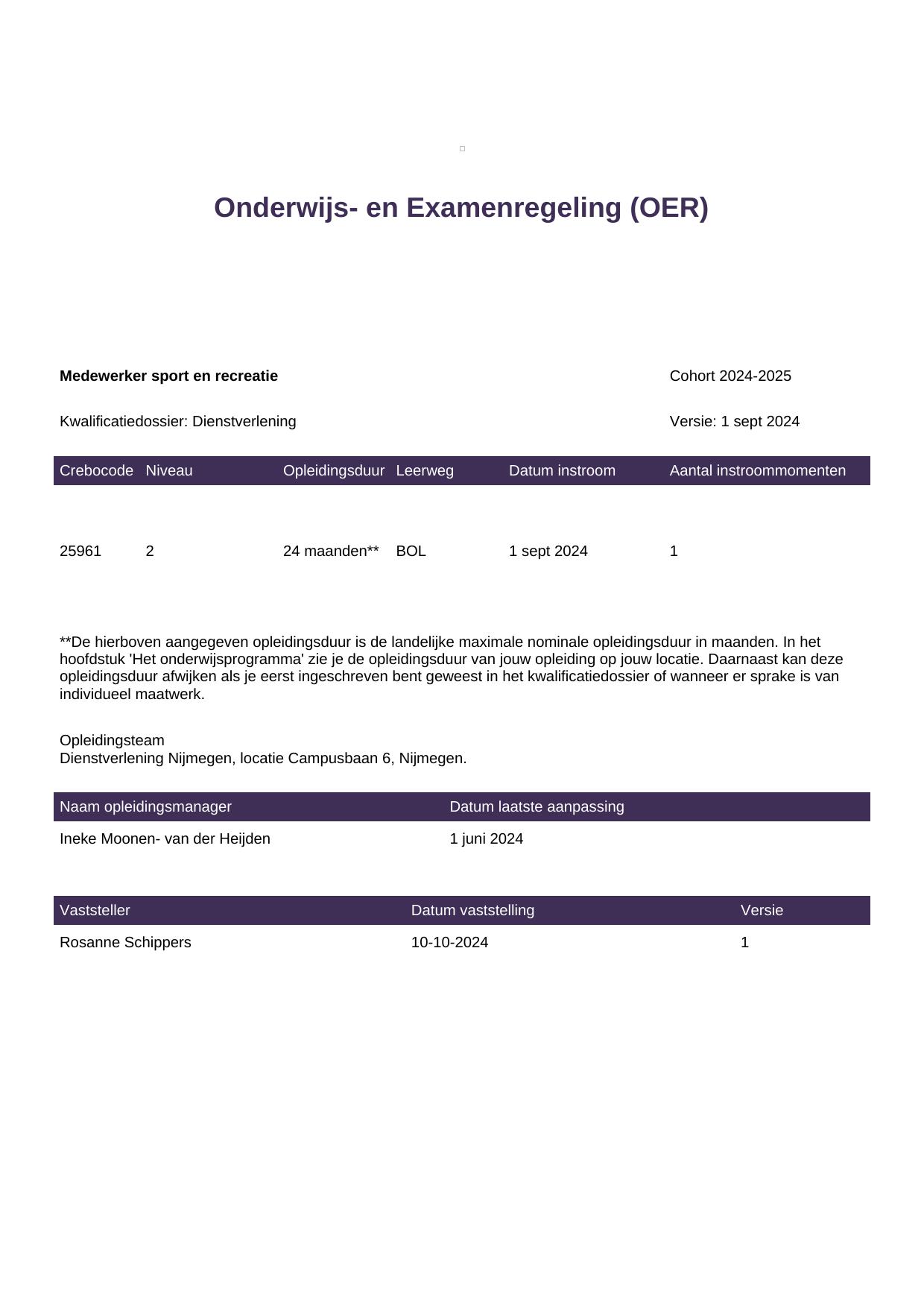 Medewerker sport en recreatie 25961BOL-NYM in cohort 2024-2025