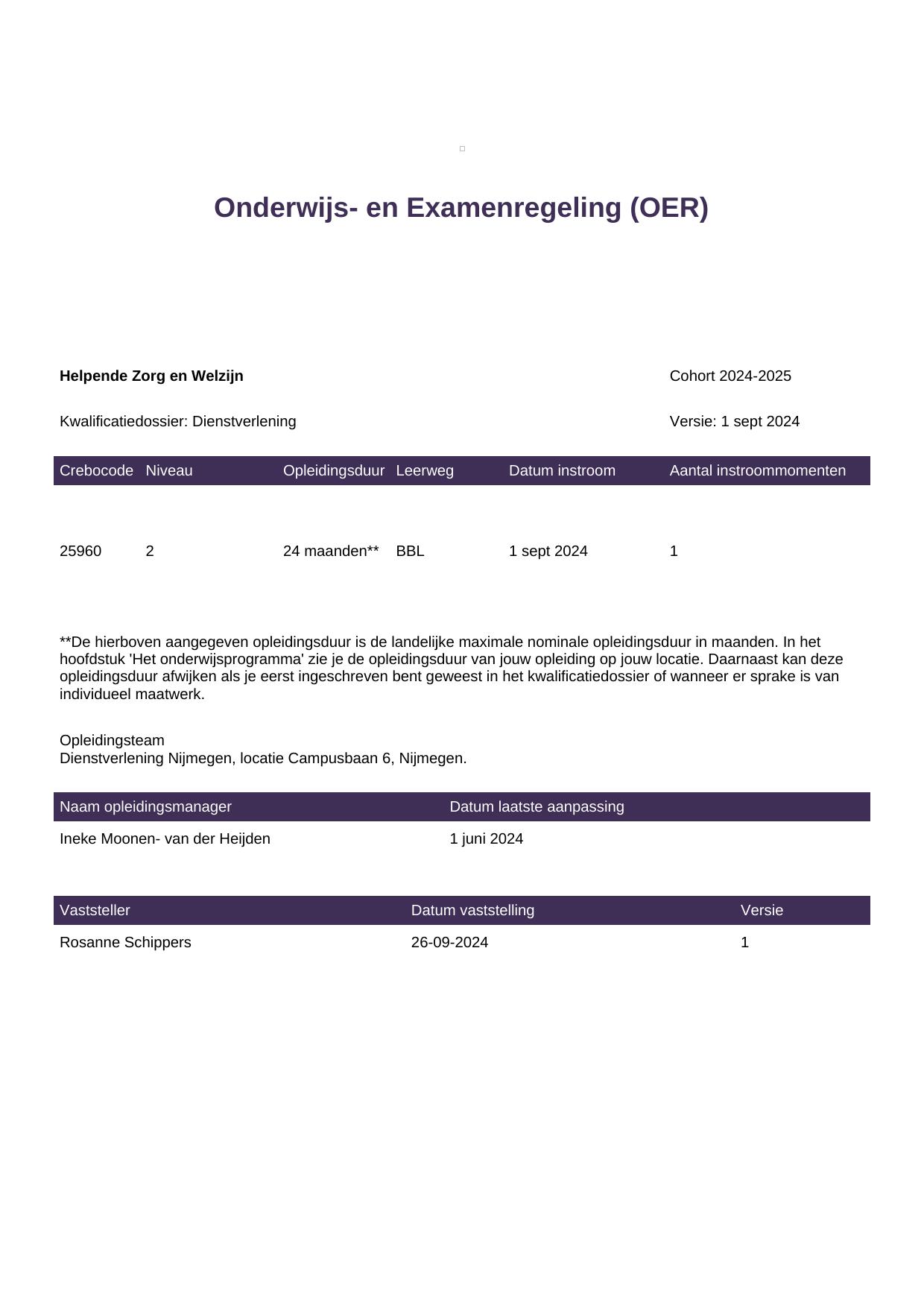 Helpende Zorg en Welzijn 25960BBL-NYM in cohort 2024-2025