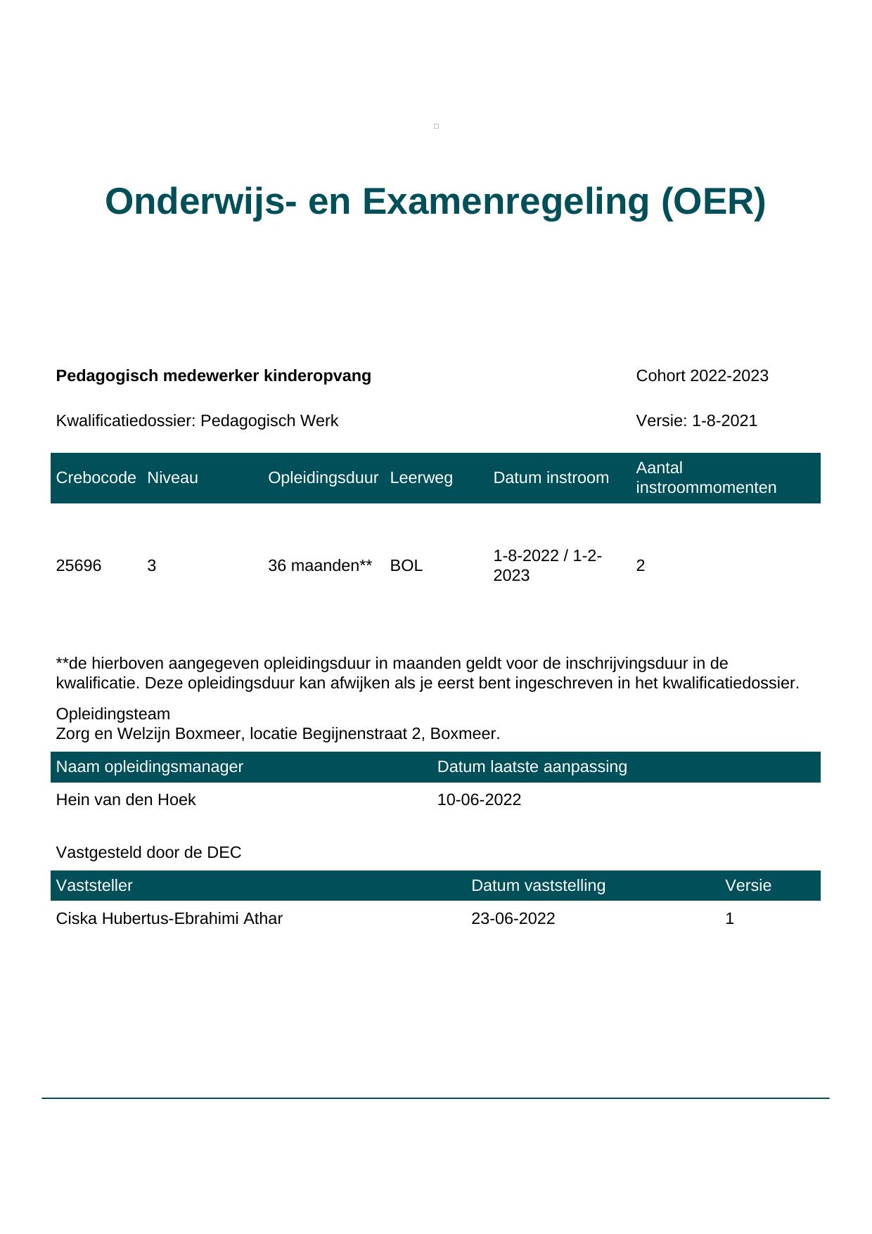 Pedagogisch medewerker kinderopvang 25696BOL-BOX in cohort 2022-2023