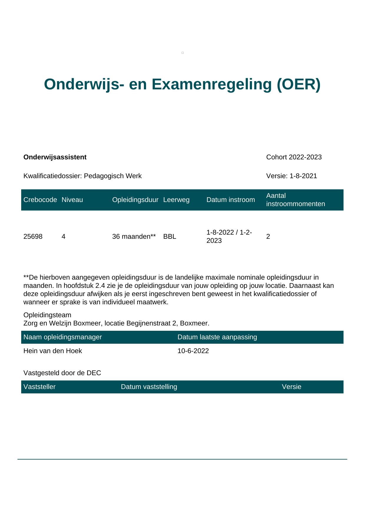 Onderwijsassistent 25698BBL-BOX in cohort 2022-2023