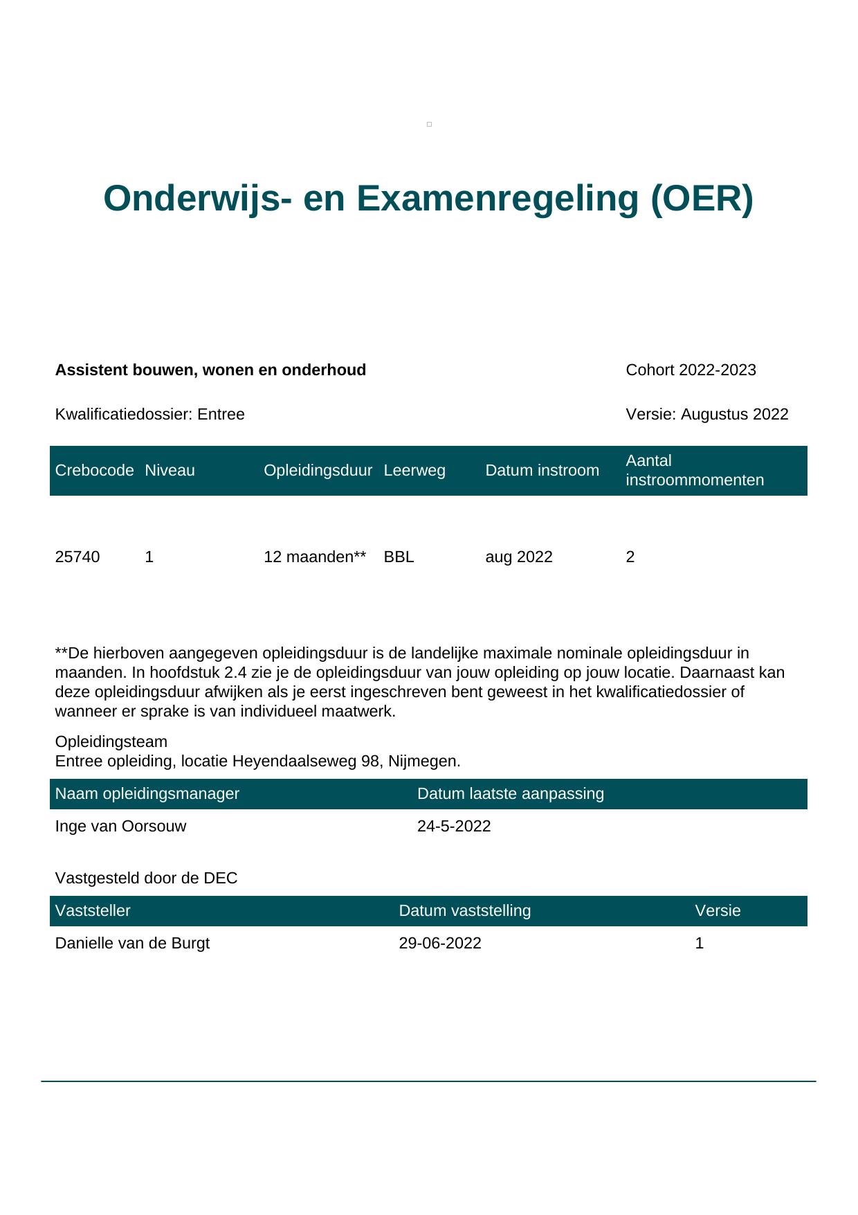 Assistent bouwen, wonen en onderhoud 25740BBL-NYM in cohort 2022-2023