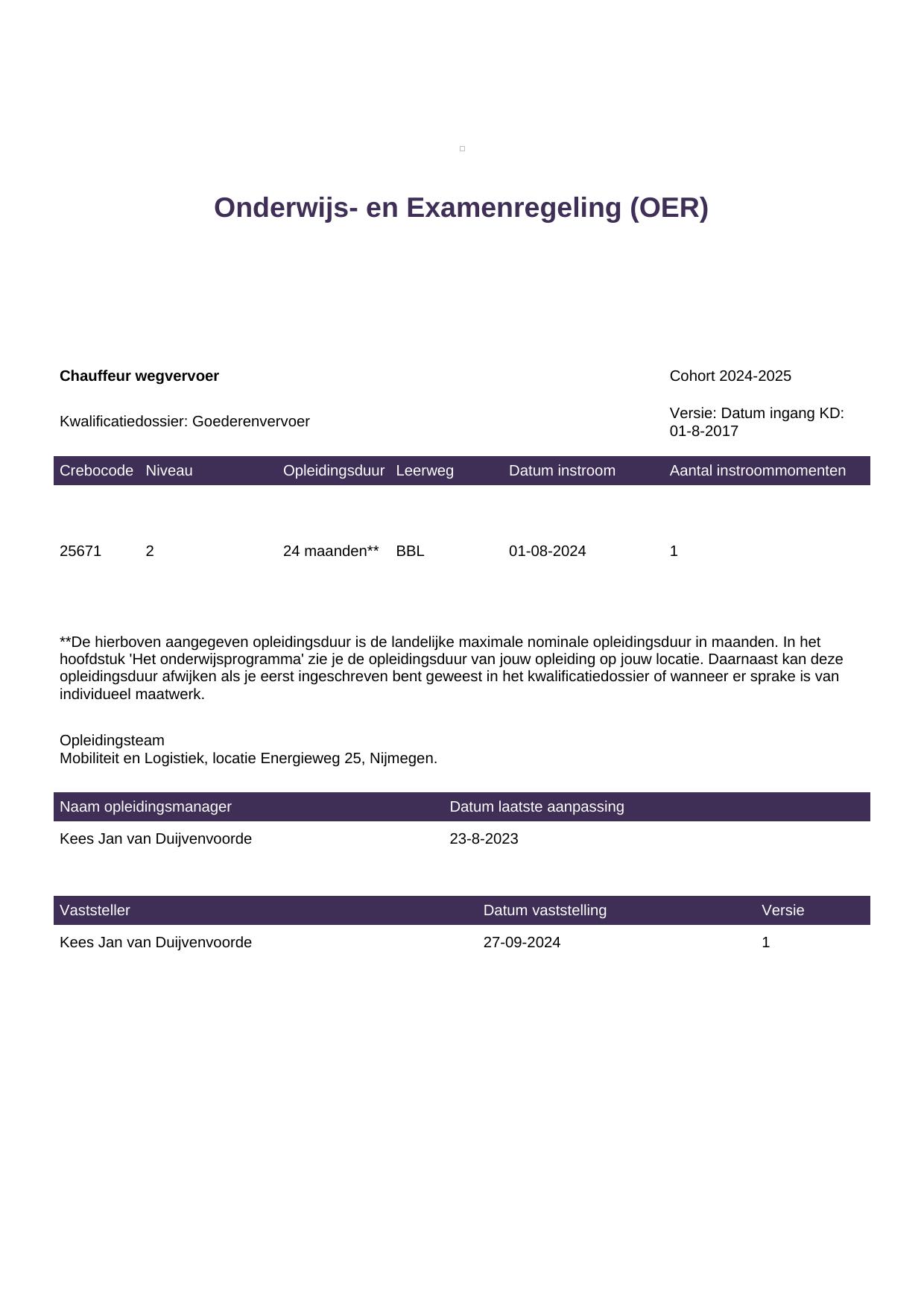 Chauffeur wegvervoer 25671BBL-NYM in cohort 2024-2025
