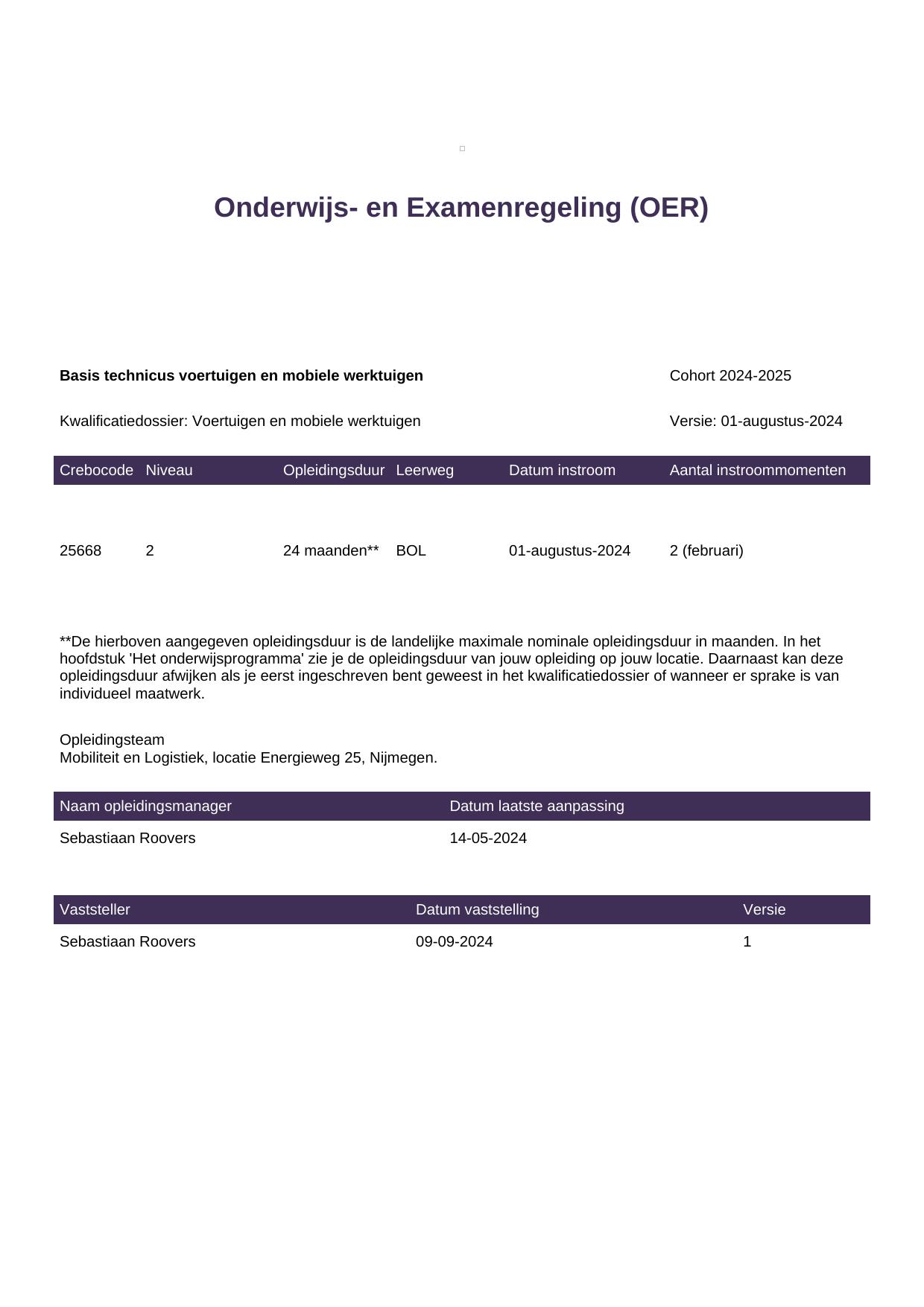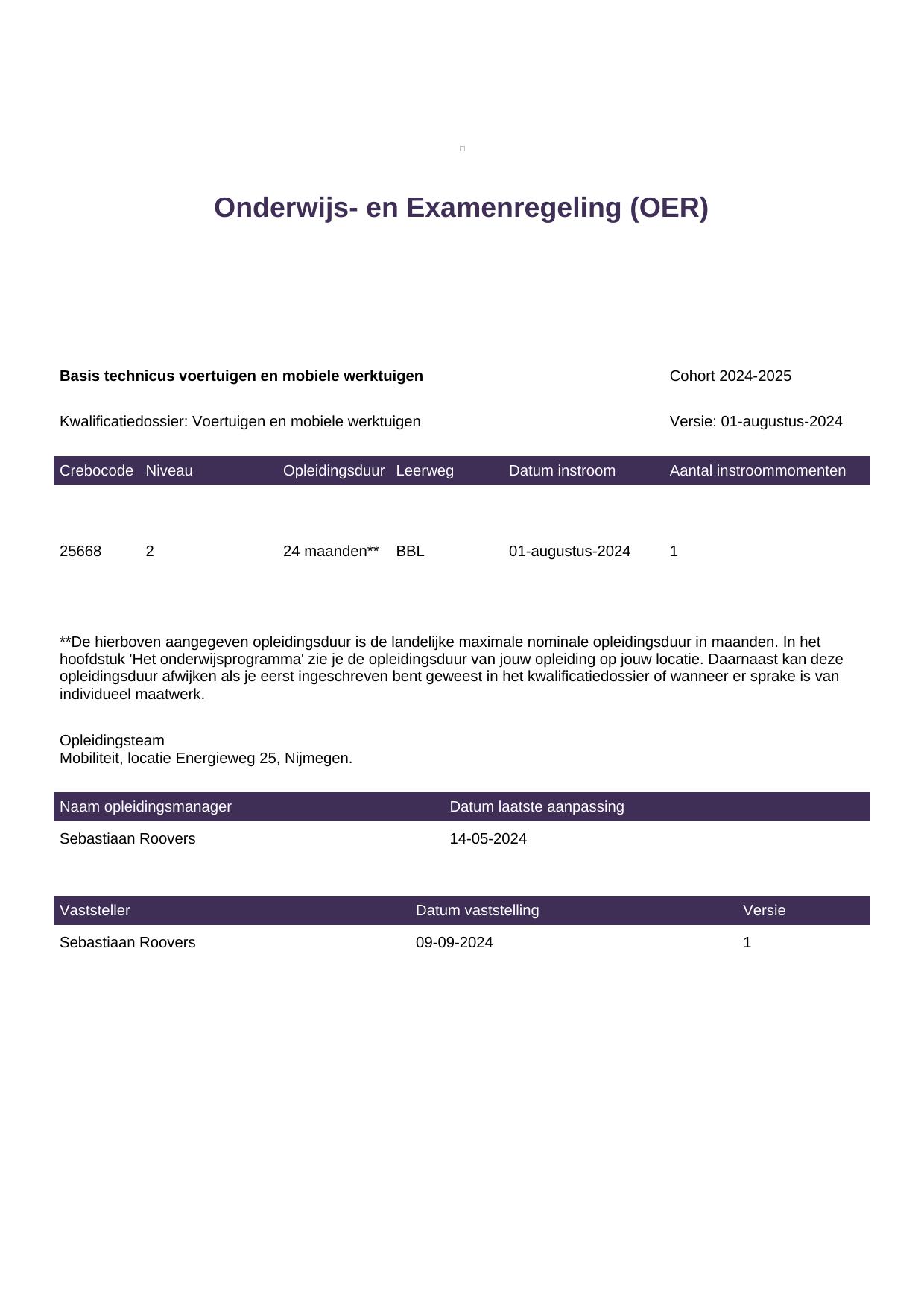 Allround technicus voertuigen en mobiele werktuigen 25669BBL-NYM-BAT in cohort 2024-2025