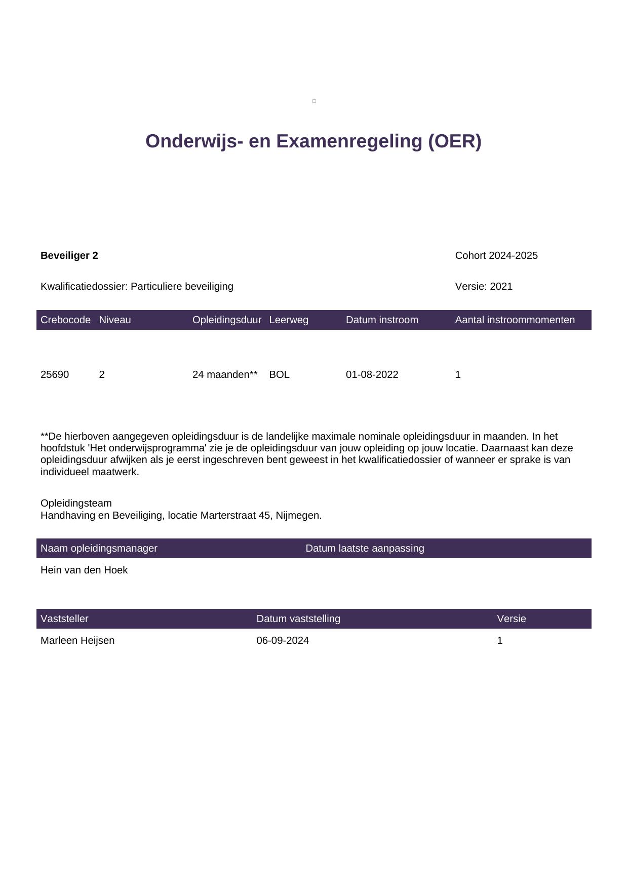 Beveiliger 2 25690BOL-NYM in cohort 2024-2025