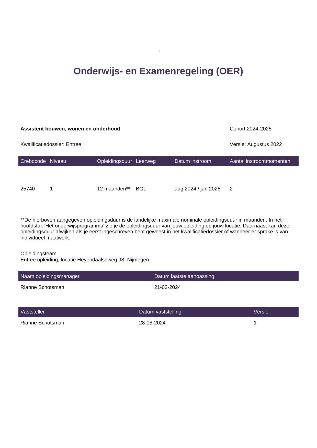 Assistent bouwen, wonen en onderhoud 25740BOL-NYM in cohort 2024-2025