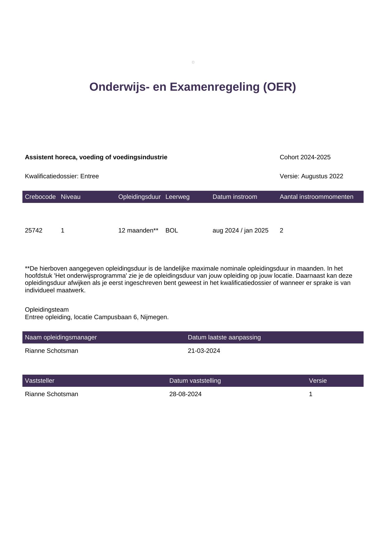 Assistent horeca, voeding of voedingsindustrie 25742BBL-NYM in cohort 2024-2025