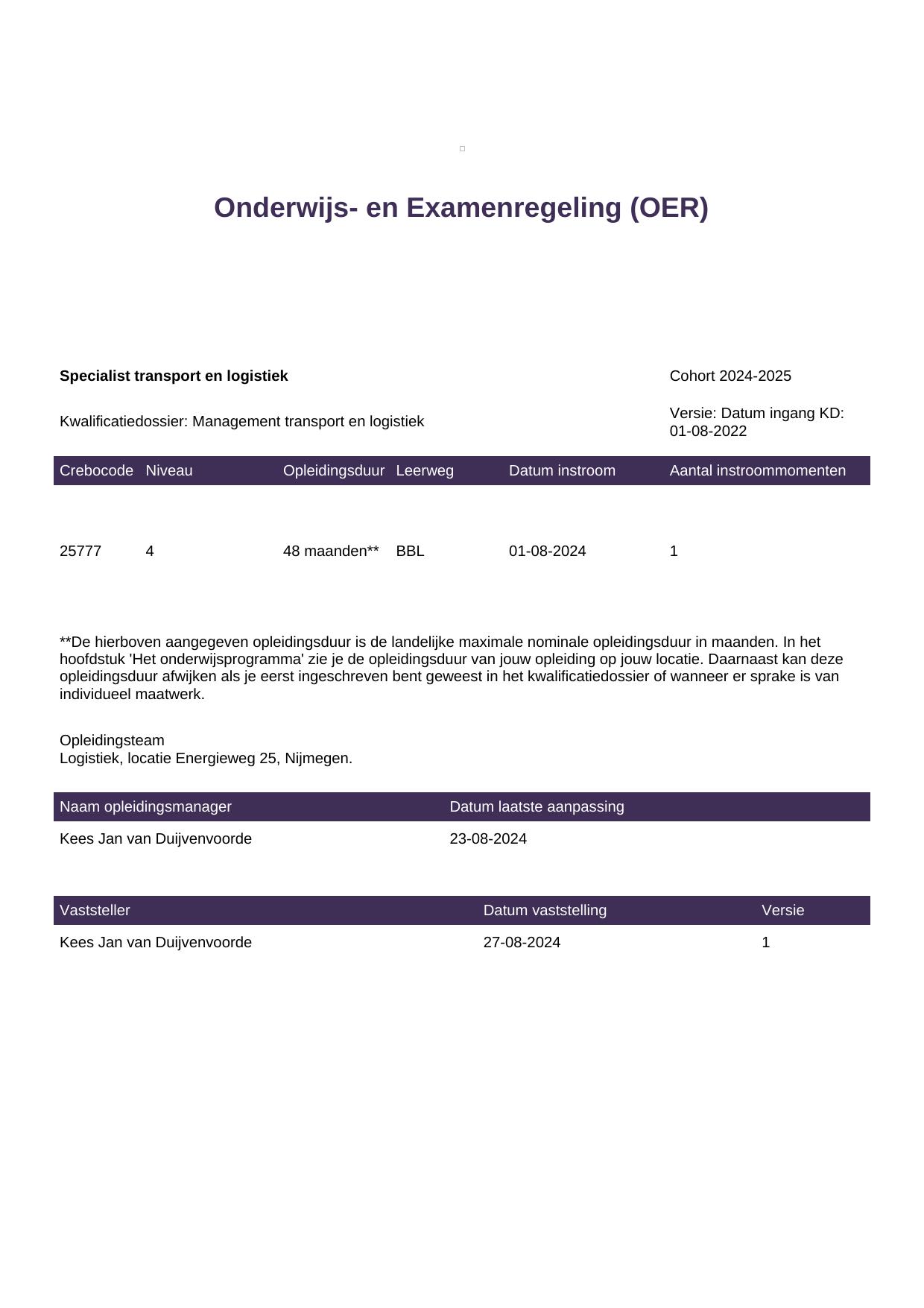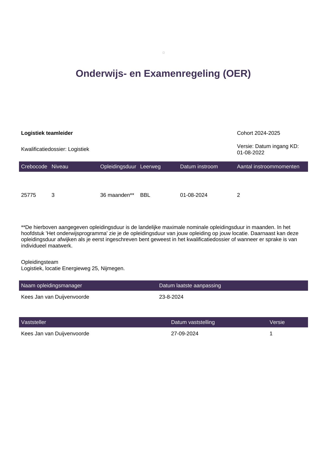 Logistiek supervisor 25776BBL-NYM in cohort 2024-2025