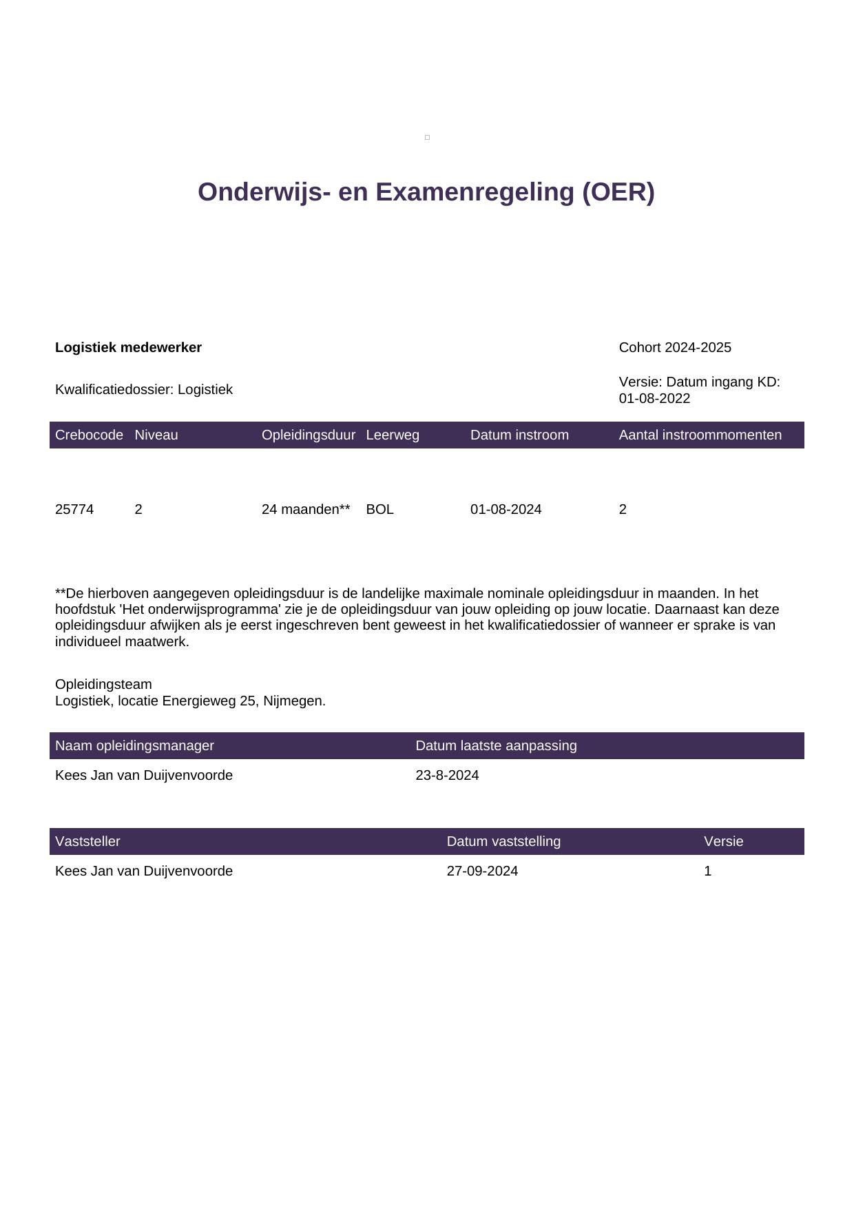 Logistiek medewerker 25774BBL-NYM in cohort 2024-2025