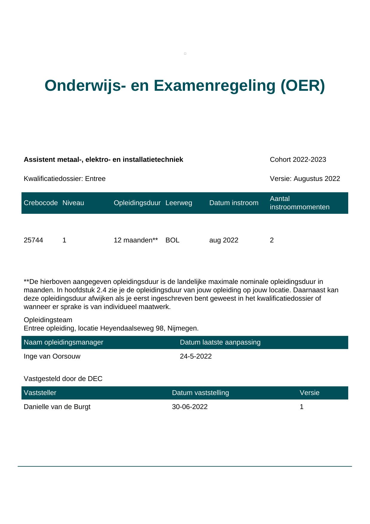 Assistent bouwen, wonen en onderhoud 25740BOL-NYM in cohort 2022-2023