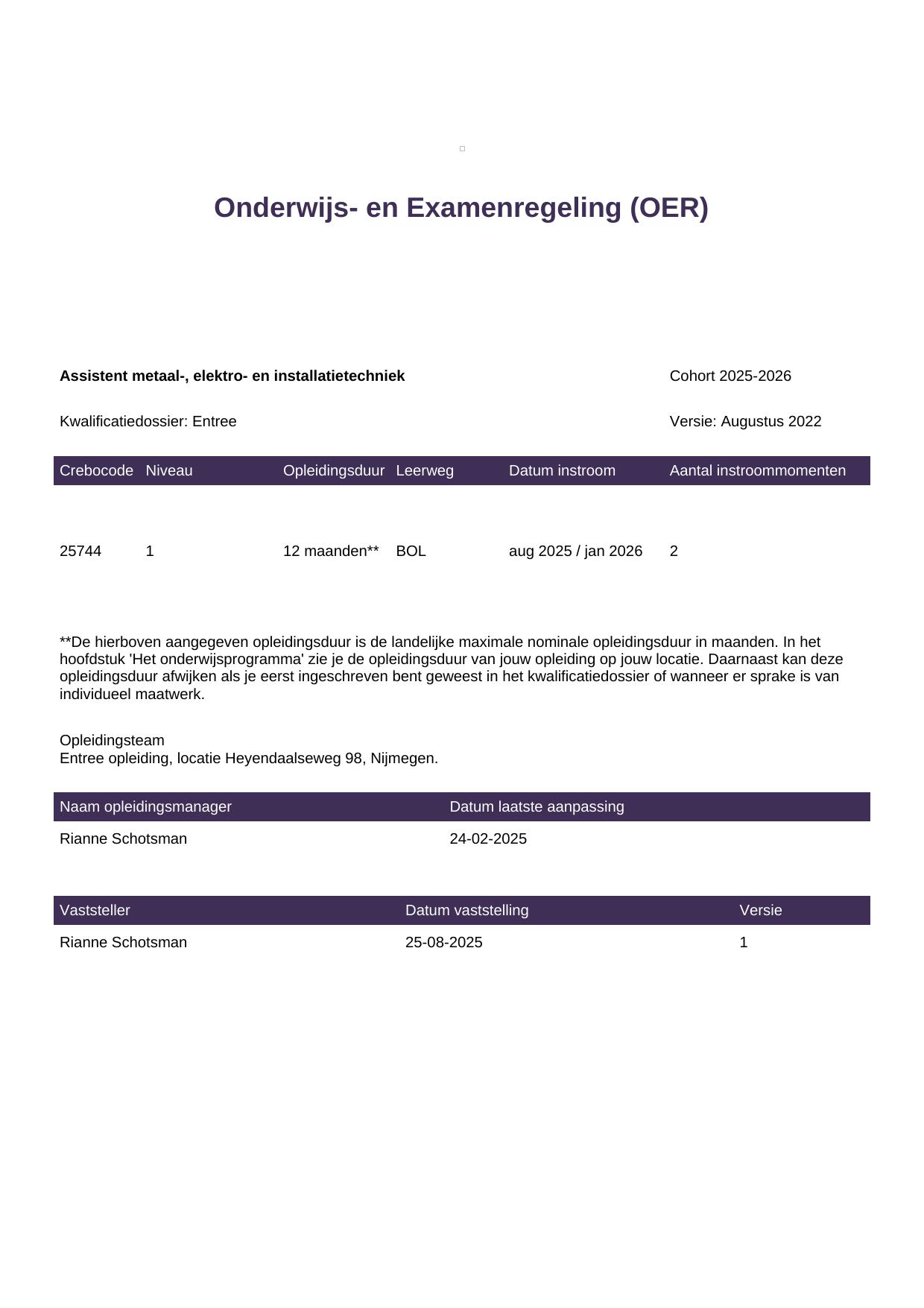 Assistent metaal-, elektro- en installatietechniek 25744BOL-NYM in cohort 2025-2026