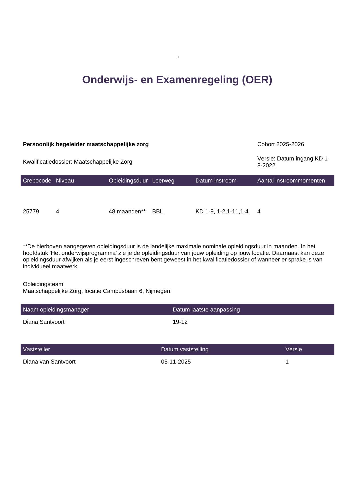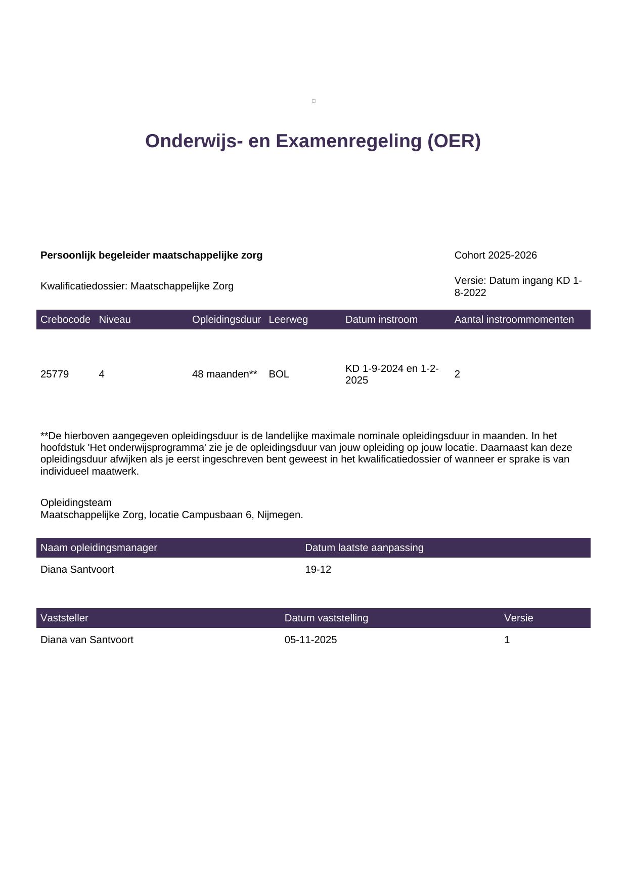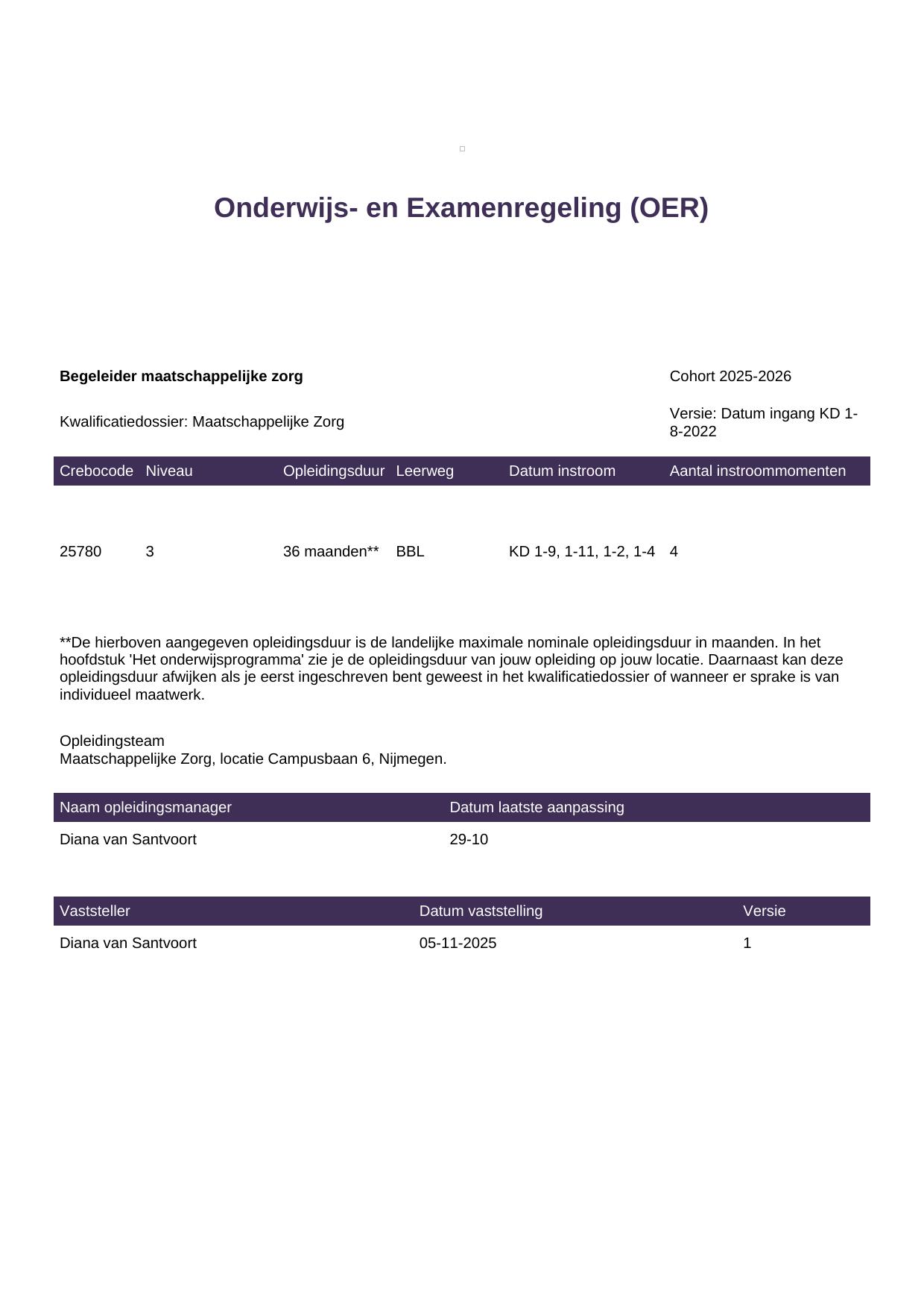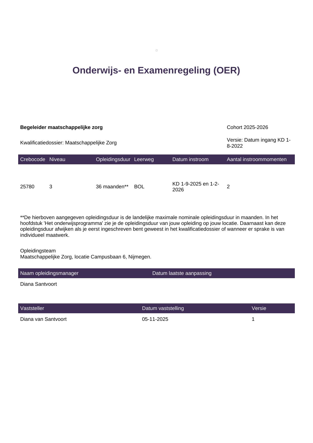 Begeleider maatschappelijke zorg 25780BBL-NYM in cohort 2025-2026