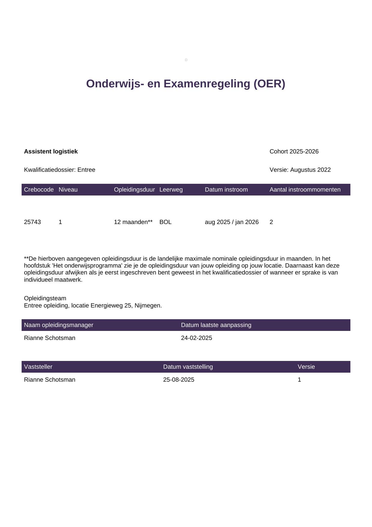Assistent logistiek 25743BBL-NYM in cohort 2025-2026