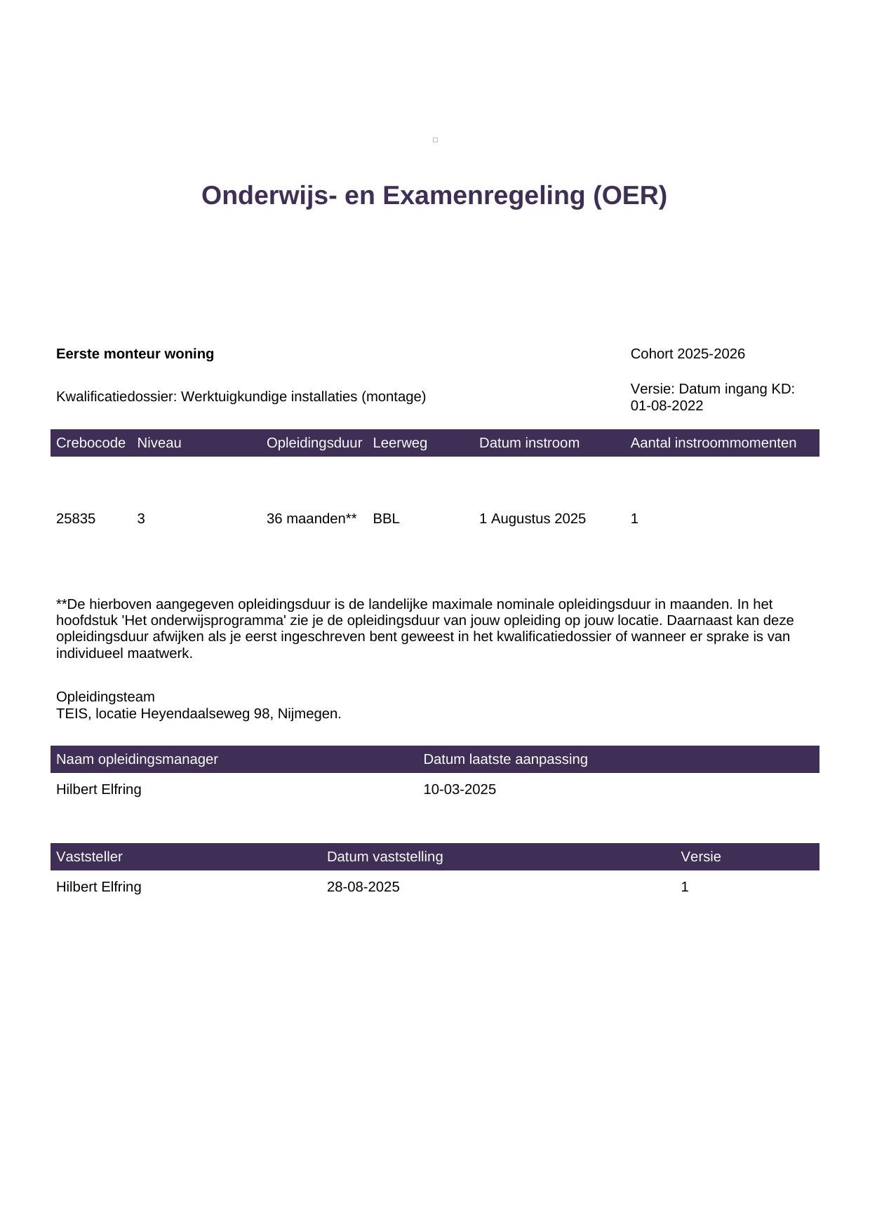 Eerste monteur woning 25835BOL-NYM in cohort 2025-2026