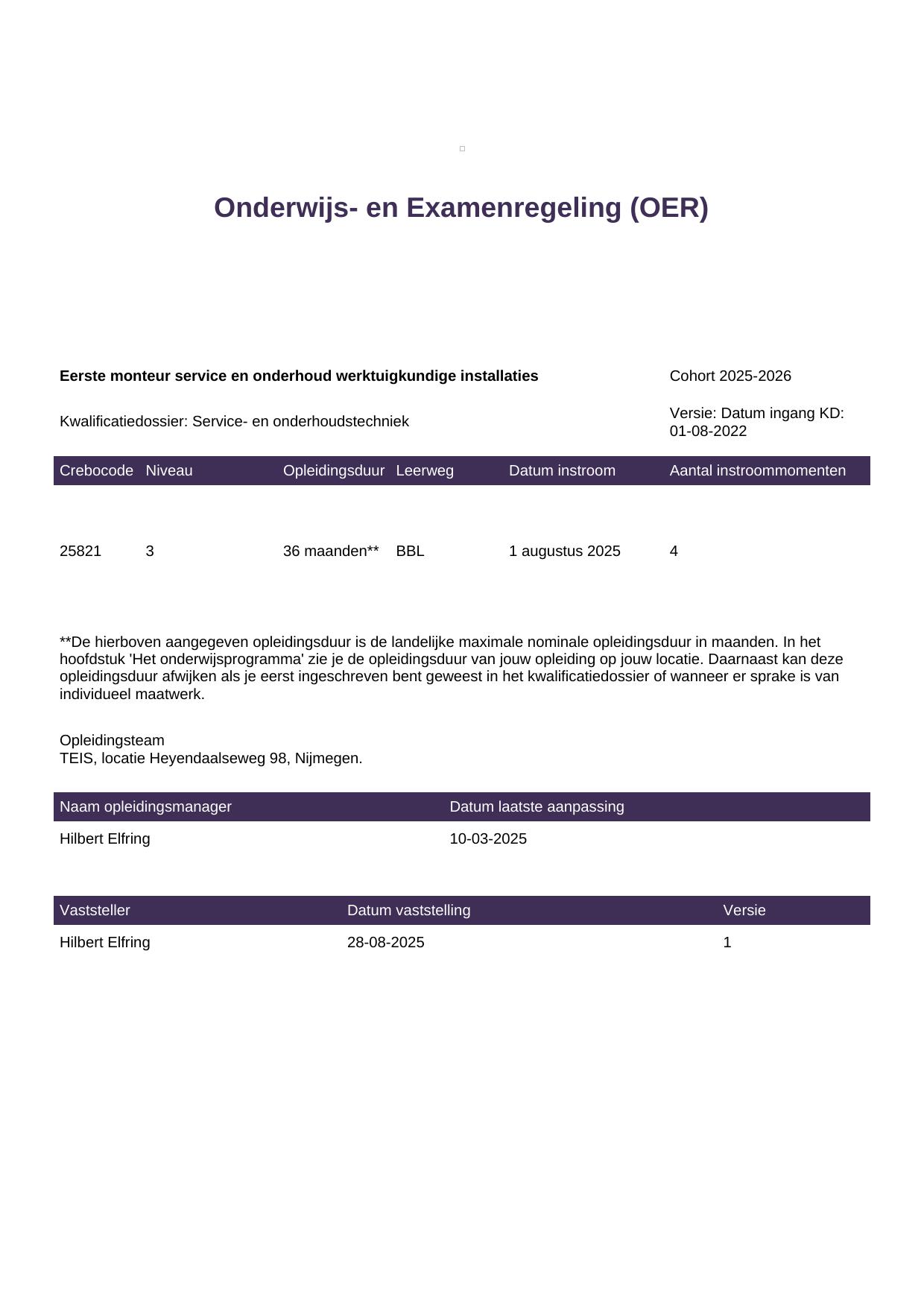 Eerste monteur service en onderhoud werktuigkundige installaties 25821BBL-NYM in cohort 2025-2026