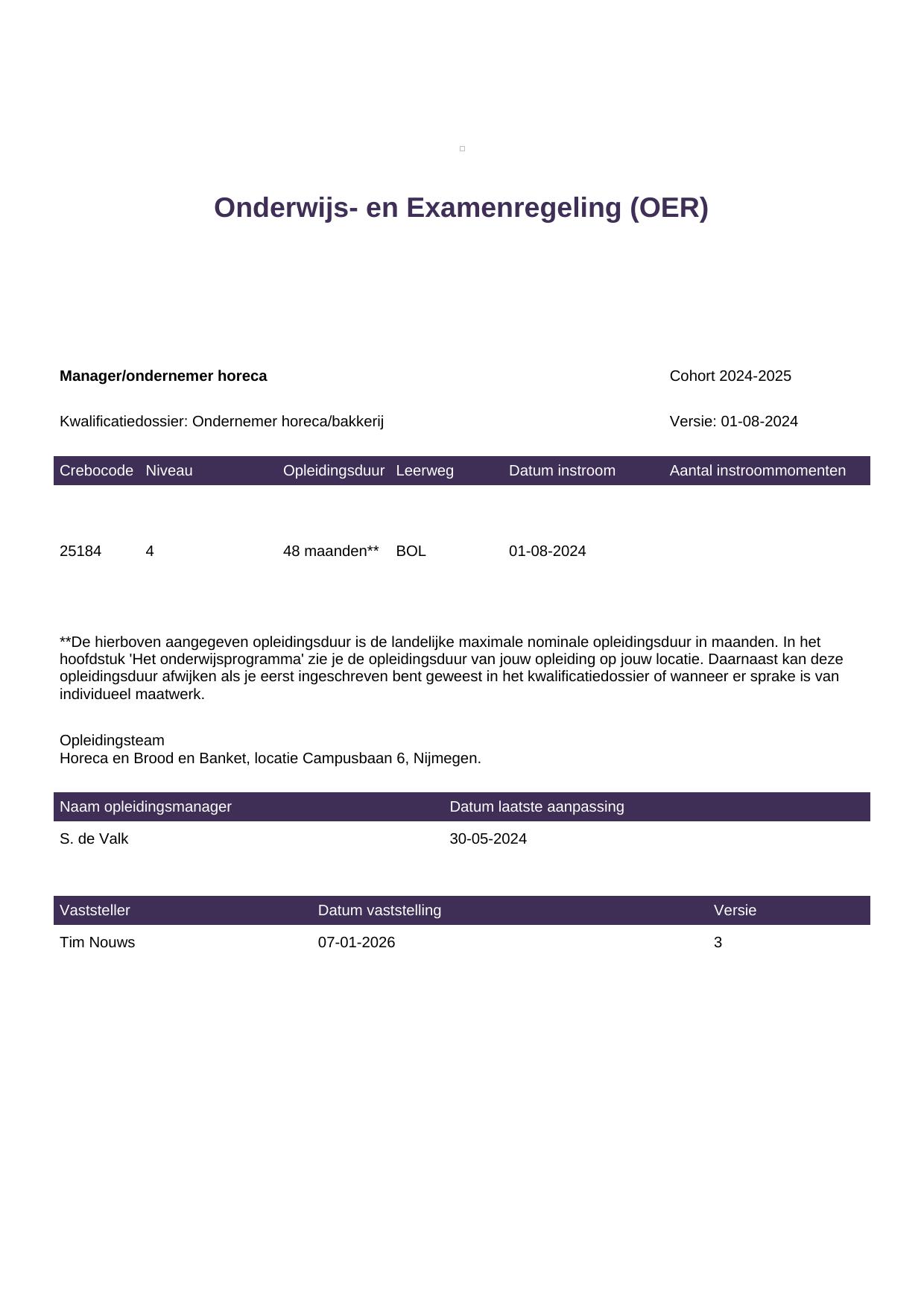 Manager/ondernemer horeca 25184BOL-NYM in cohort 2025-2026