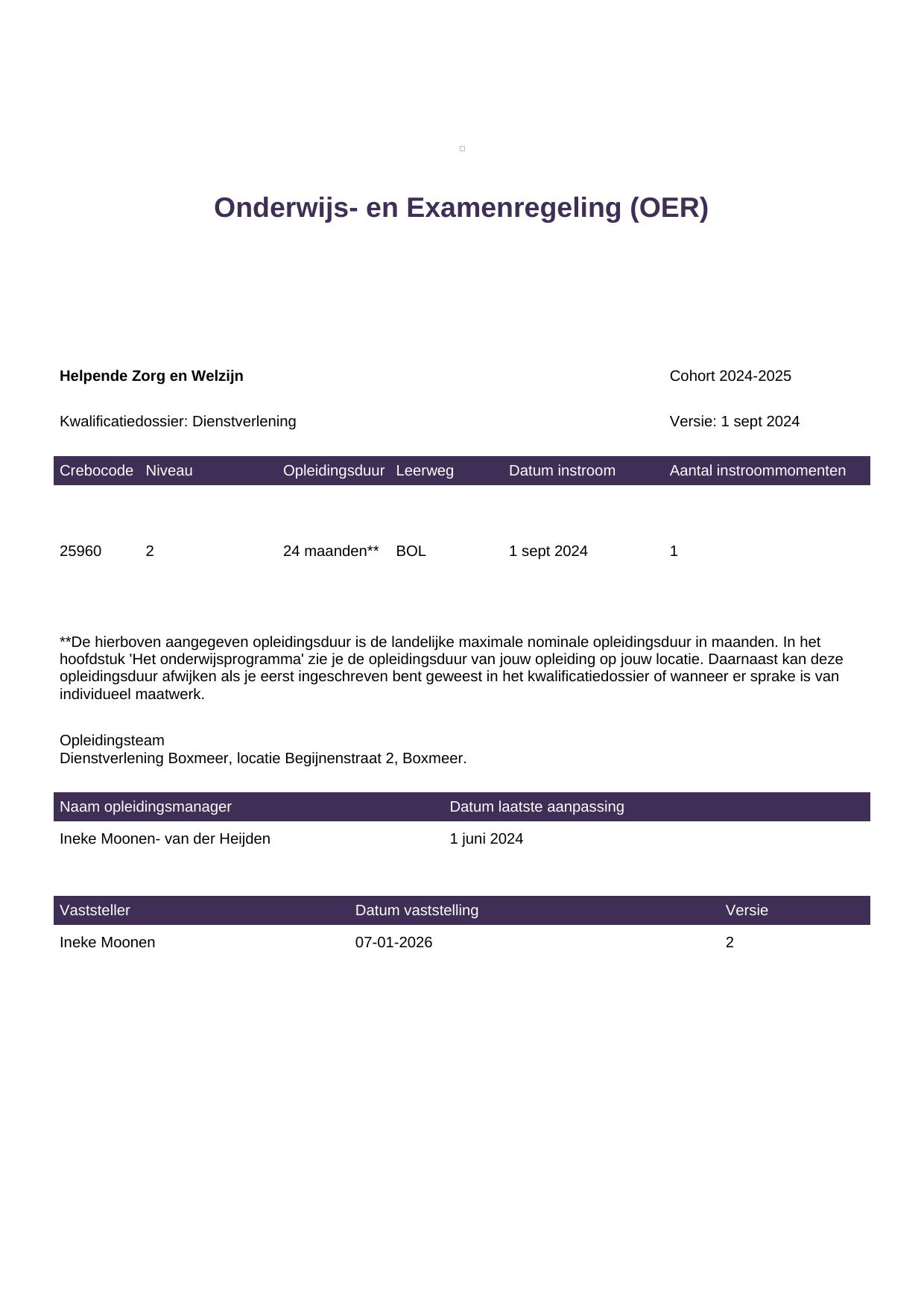 Helpende Zorg en Welzijn 25960BOL-BOX in cohort 2024-2025