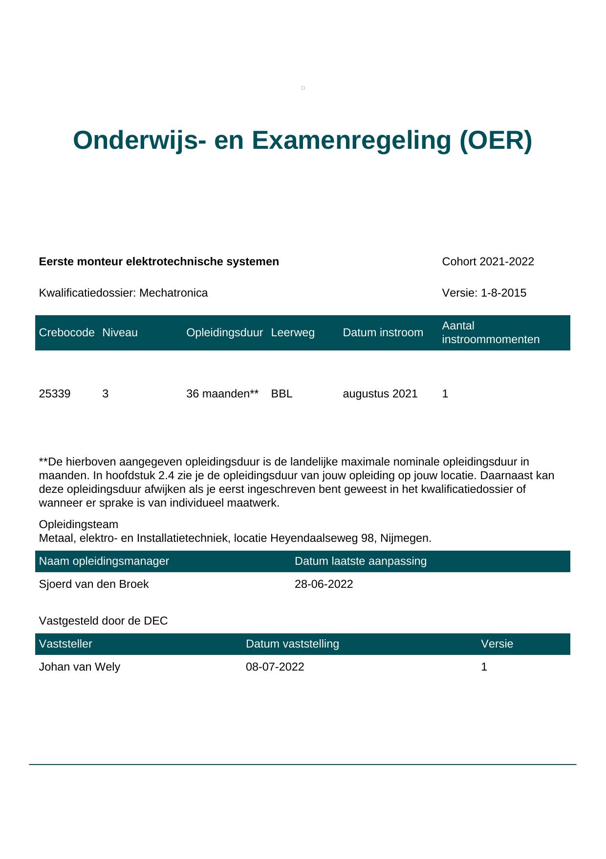 Eerste monteur mechatronica 25340BBL-NYM in cohort 2021-2022