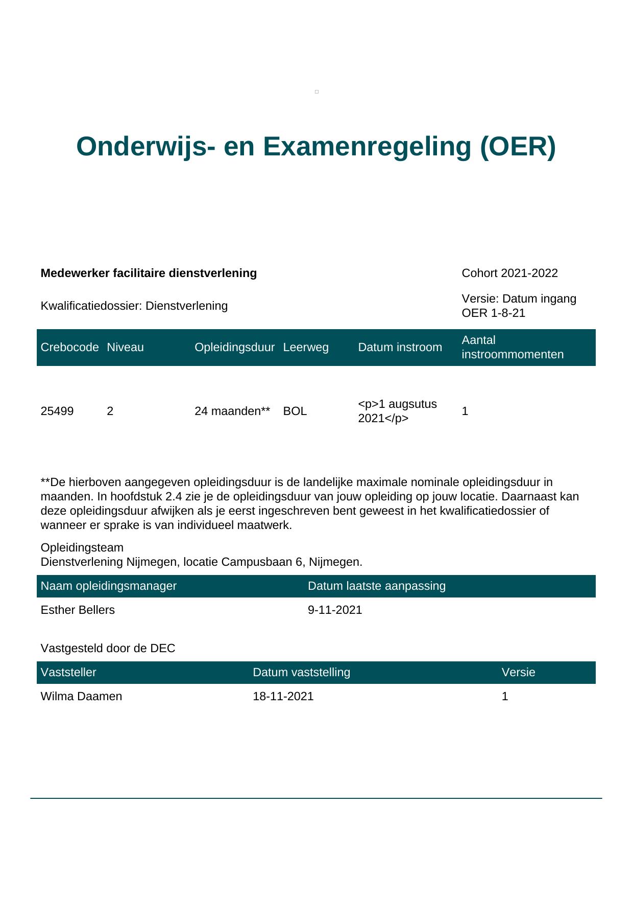Medewerker facilitaire dienstverlening 25499BOL-NYM in cohort 2021-2022