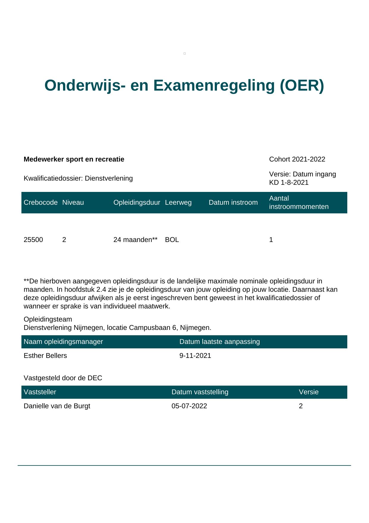 Medewerker sport en recreatie 25500BOL-NYM in cohort 2021-2022