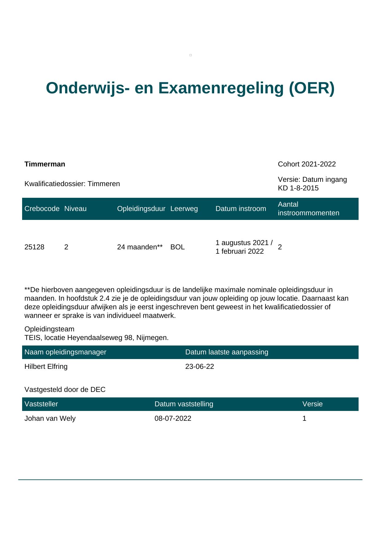 Allround timmerman 25118BOL-NYM in cohort 2021-2022