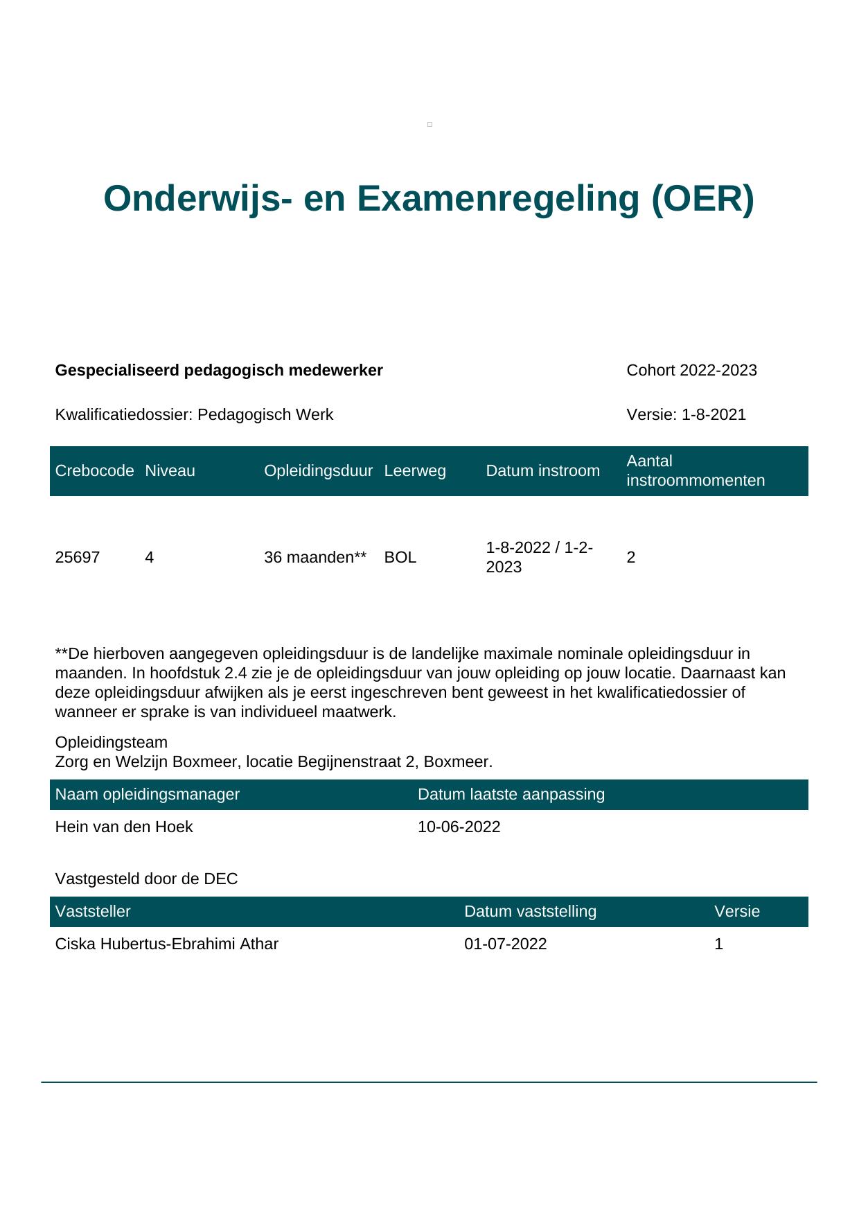 Gespecialiseerd pedagogisch medewerker 25697BOL-BOX in cohort 2022-2023
