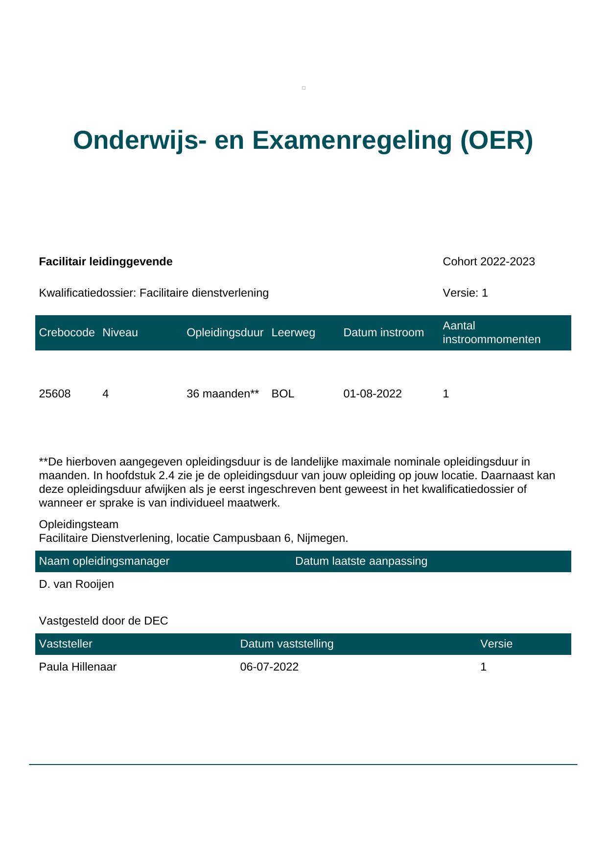 Facilitair leidinggevende 25608BOL-NYM-2J in cohort 2022-2023