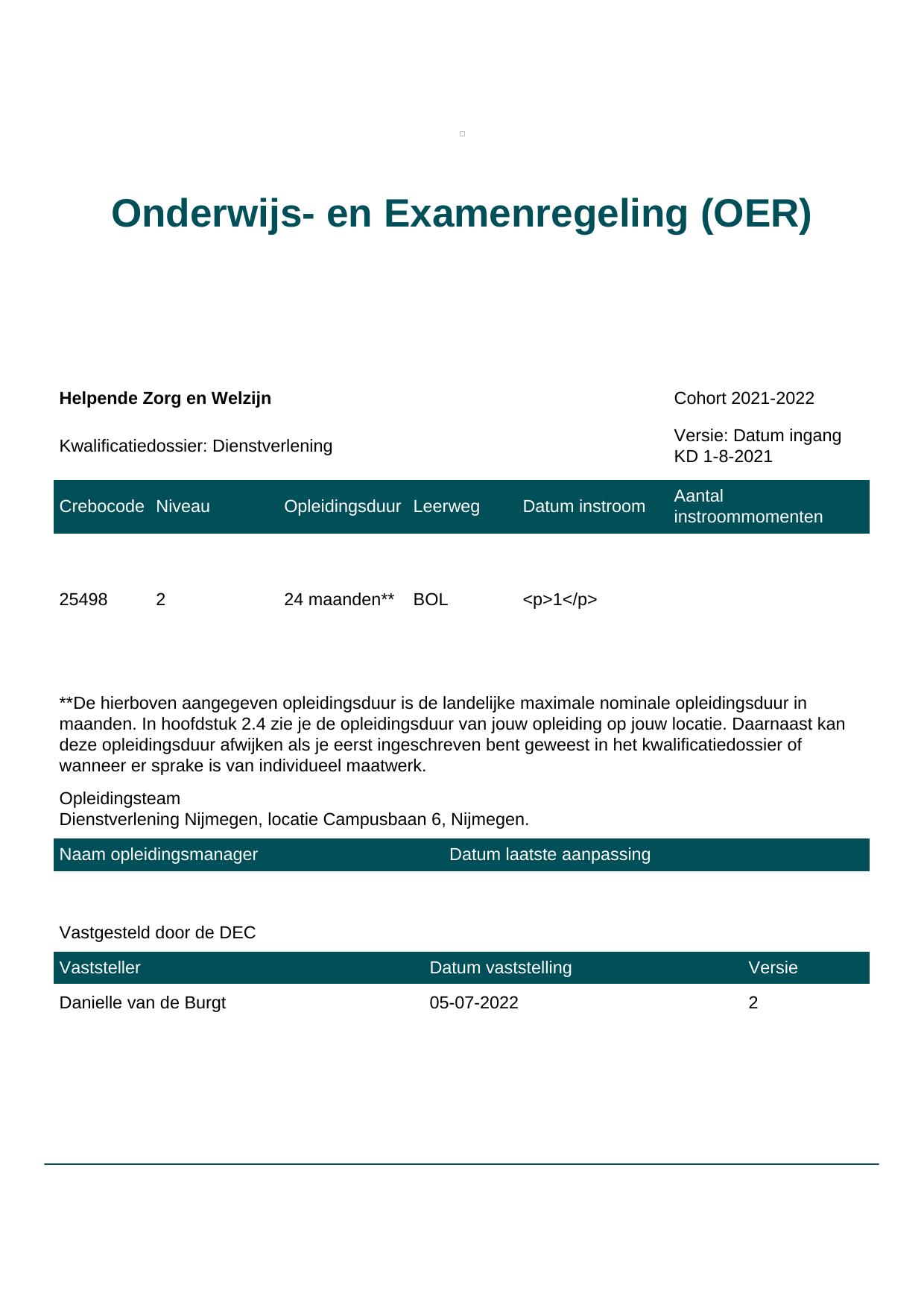 Helpende Zorg en Welzijn 25498BOL-NYM in cohort 2021-2022