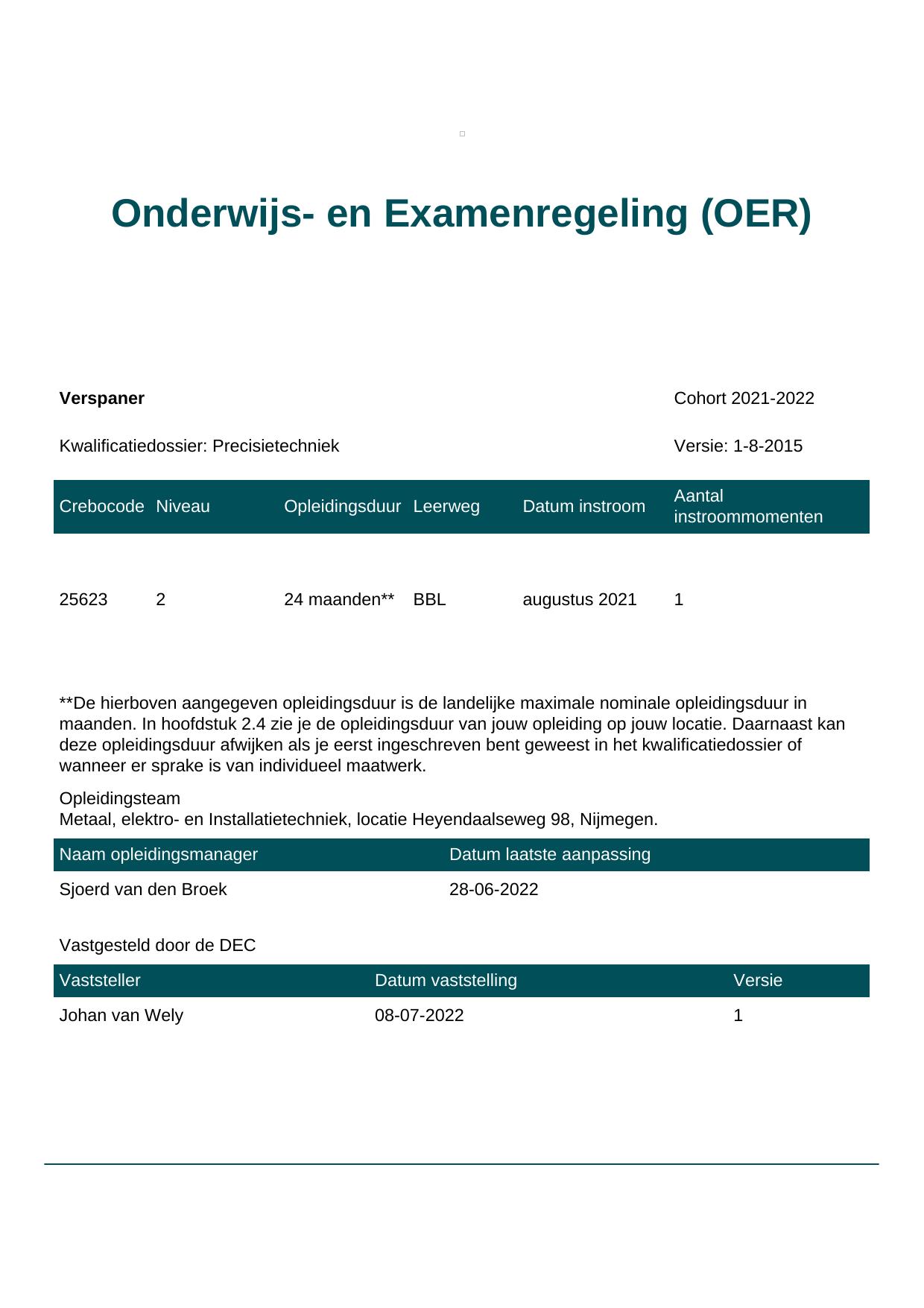 Verspaner 25623BBL-NYM in cohort 2021-2022