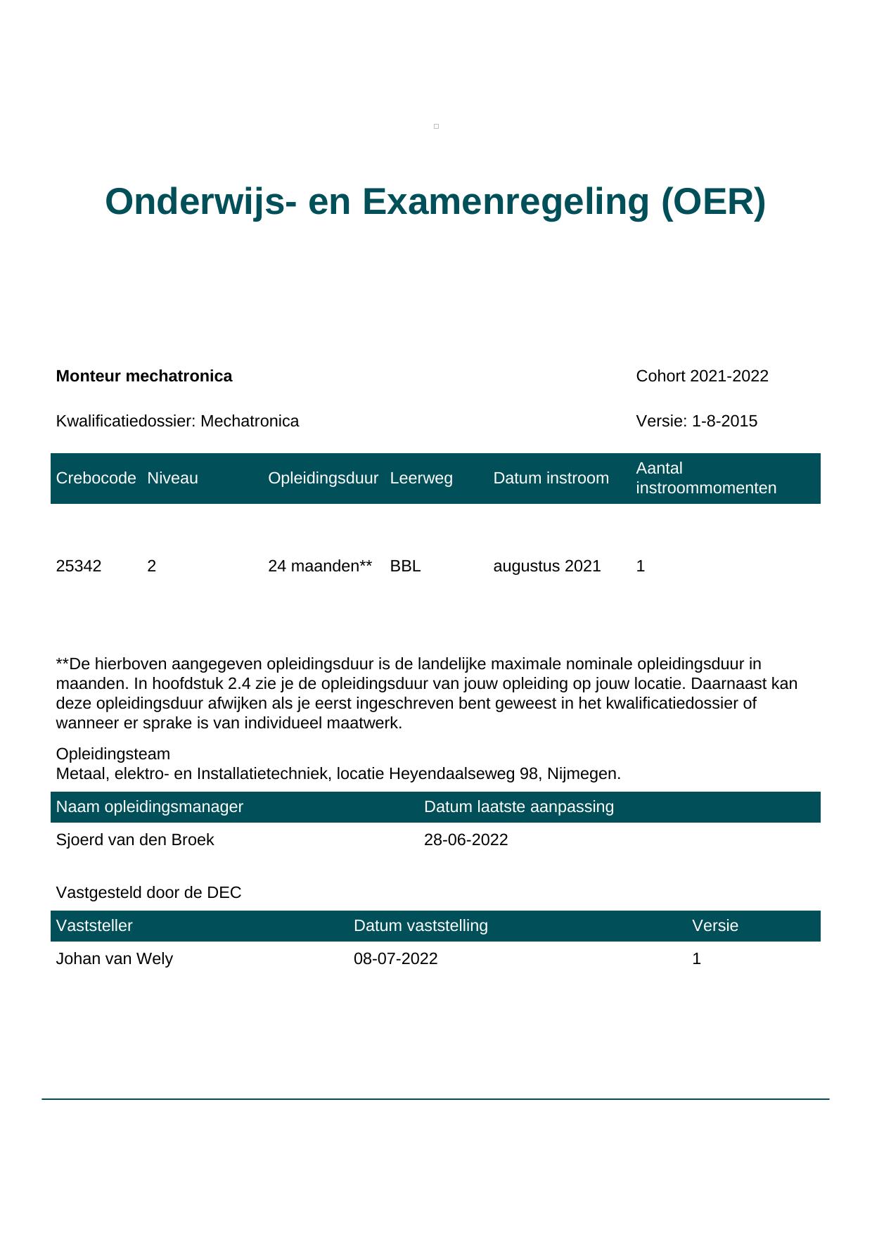 Monteur mechatronica 25342BBL-NYM in cohort 2021-2022